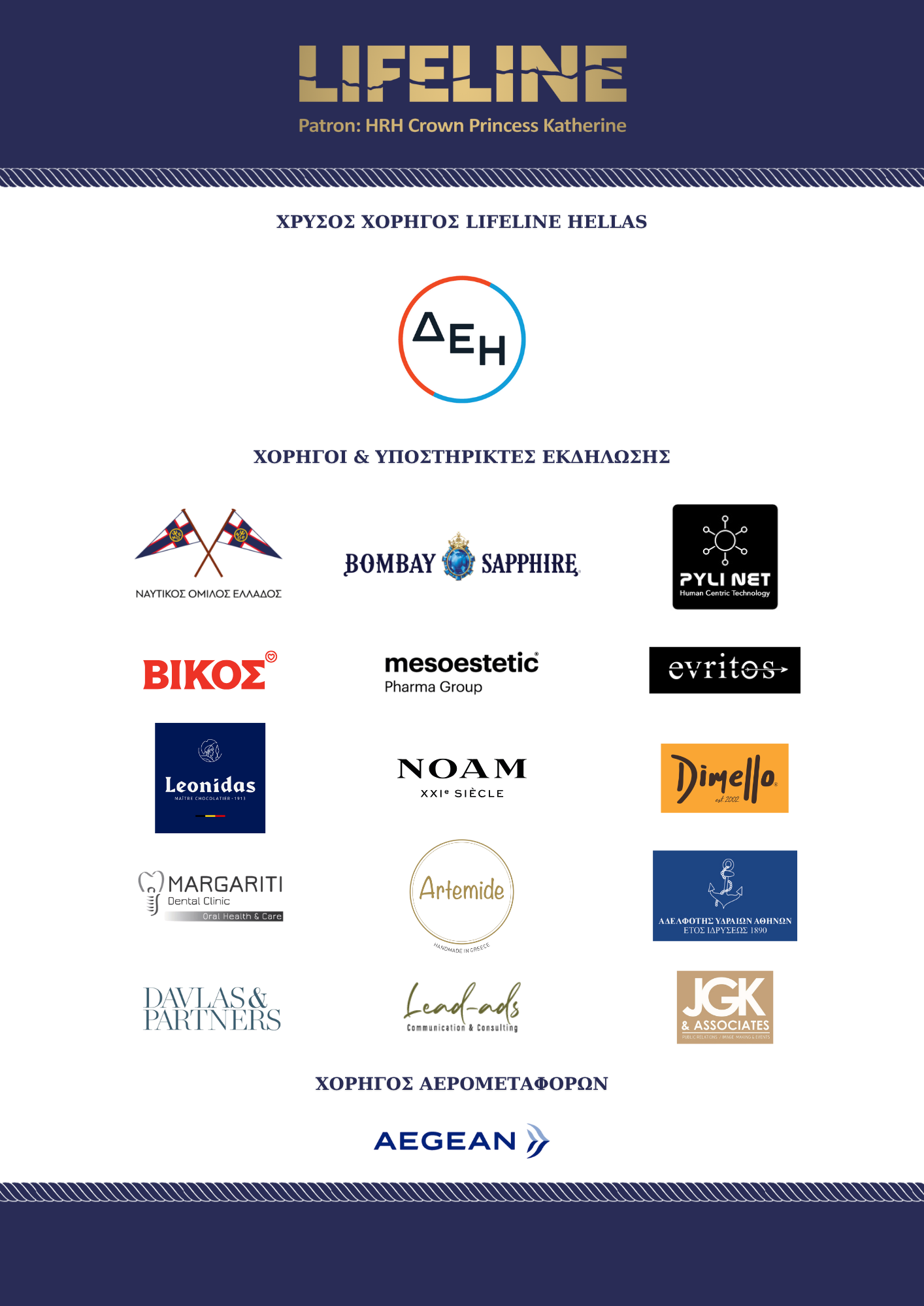 Υποστηρικτές της εκδήλωσης ήταν: ο Ναυτικός Όμιλος Ελλάδος, η Ρίτα Μωραϊτάκη, η Margariti Dental Clinic, η Αδελφότητα Υδραίων Αθηνών, Davlas & Partners, JGK & Associates.